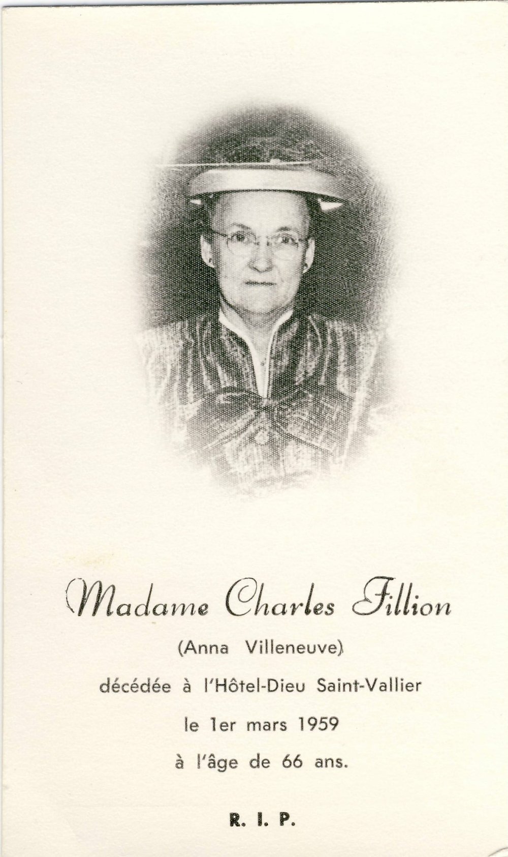 DÉCÈS: 1 Mars 1959 Chicoutimi