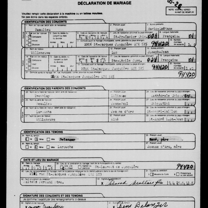 Mère : LAROUCHE, Jeanne-D’Arc (1921‑1991)