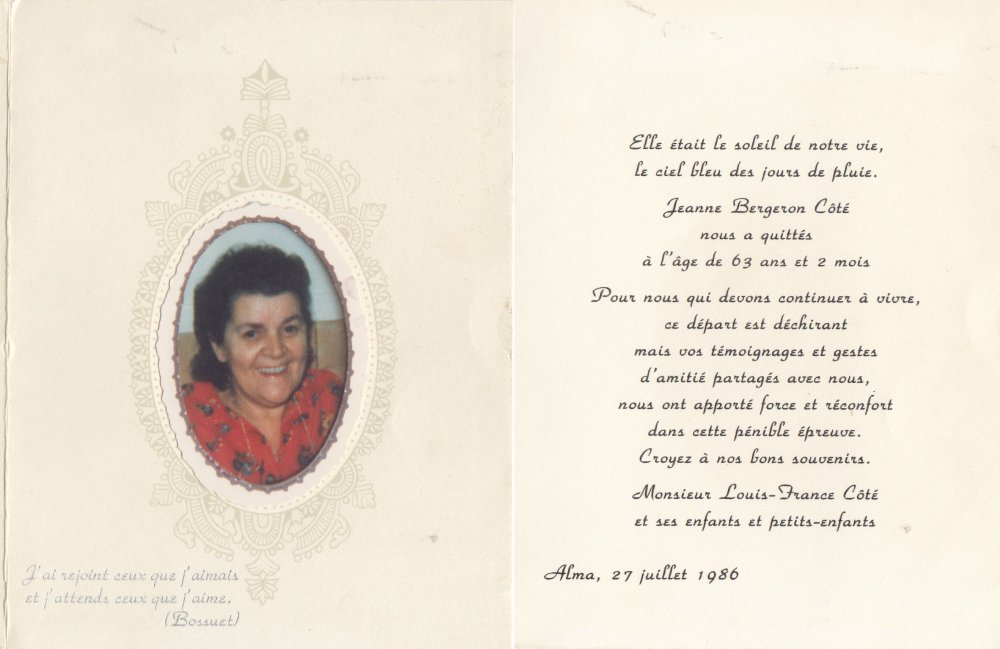 PARENTS : Josaphat Bergeron et Blanche Gagnon