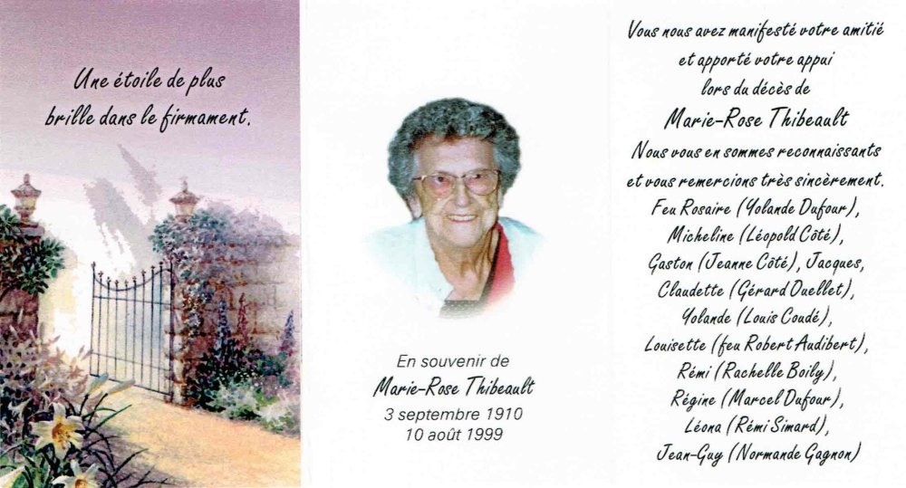 PARENTS: Thomas Louis Thibeault et Athaïs Gagné