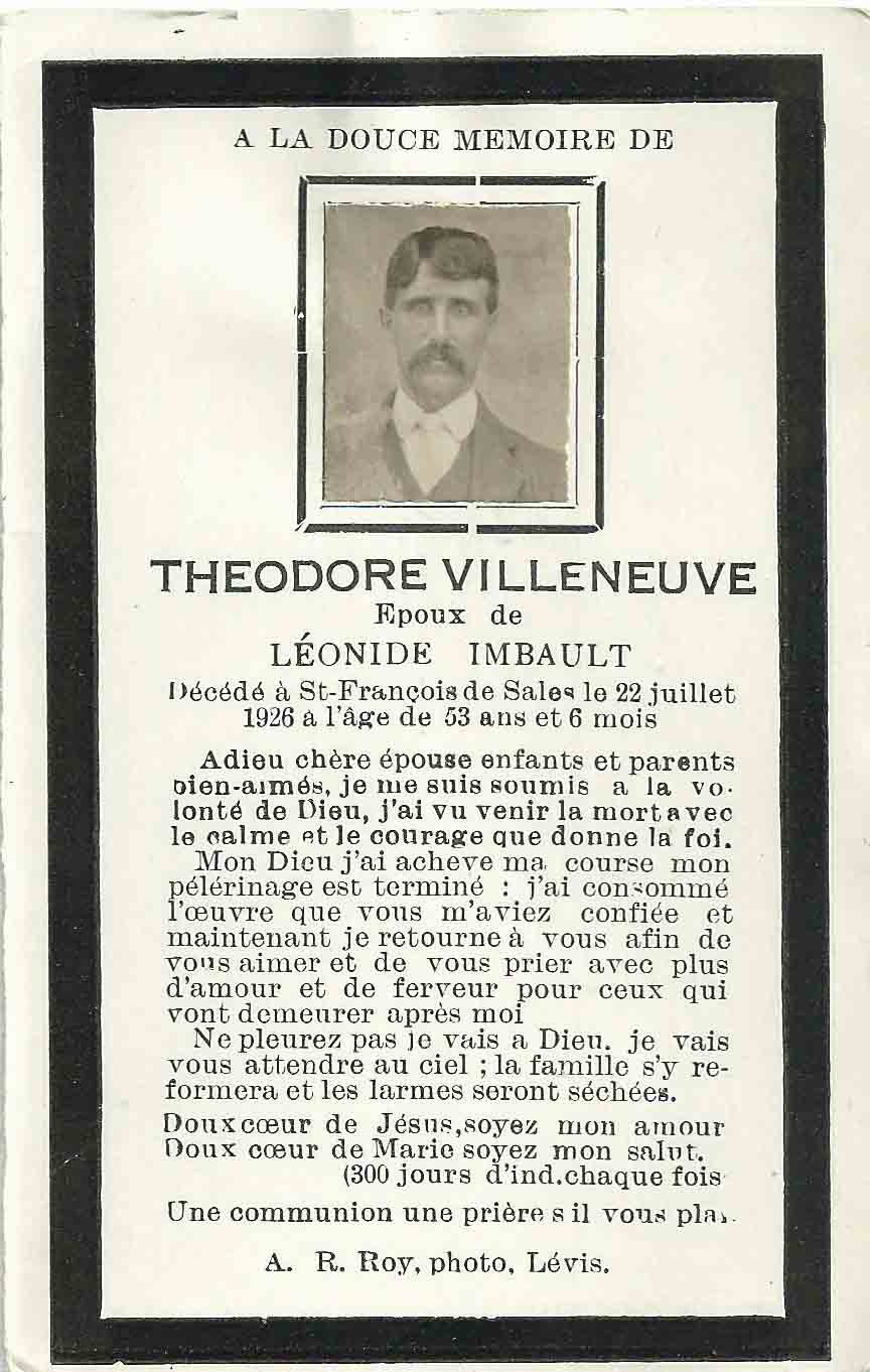 PARENTS: François Villeneuve et Céleste Tremblay