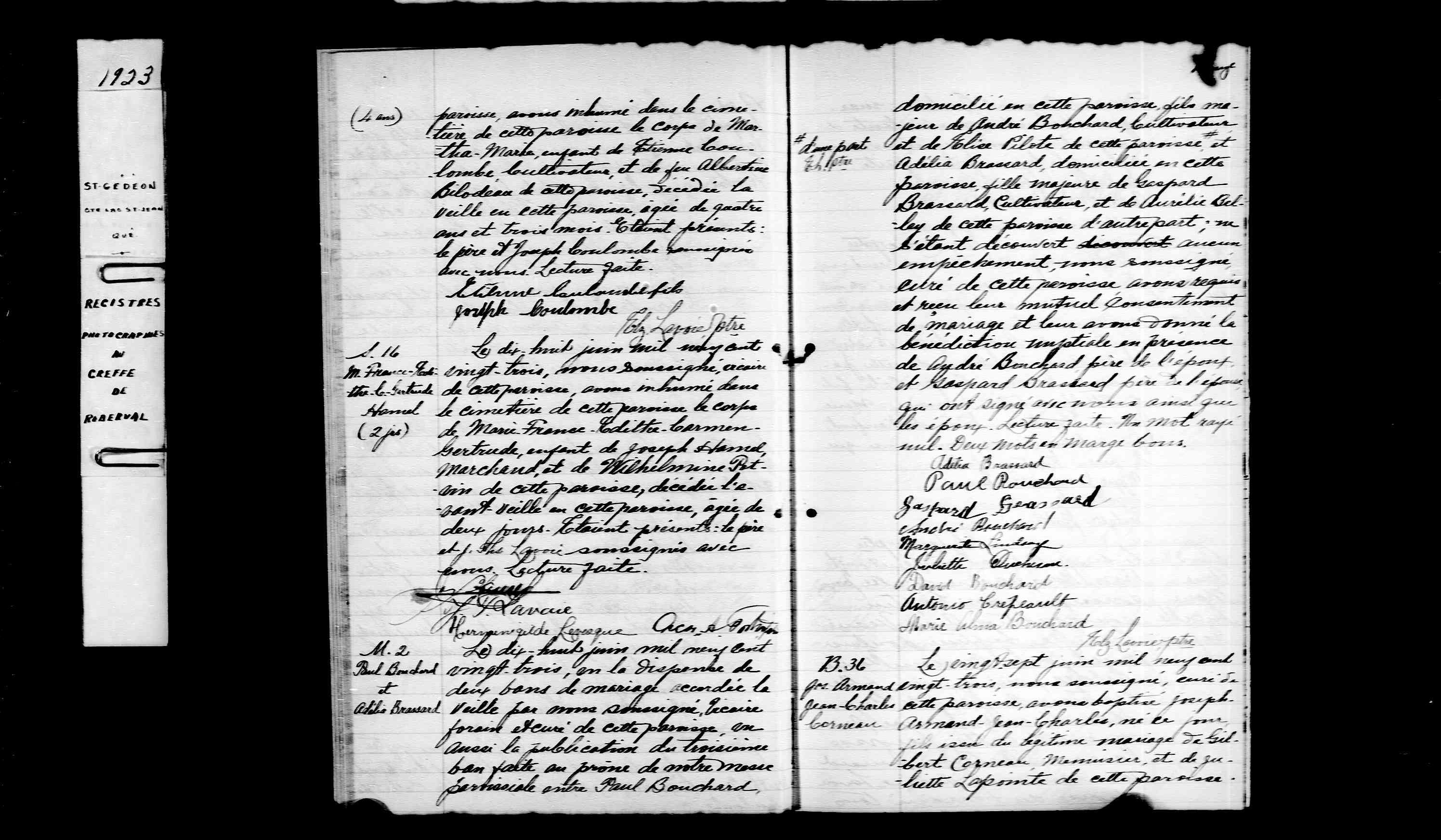 Mariage ou Union de fait : 19 juin 1923 Saint-Antoine-de-Padoue, Saint-Gédéon, QC,, Canada