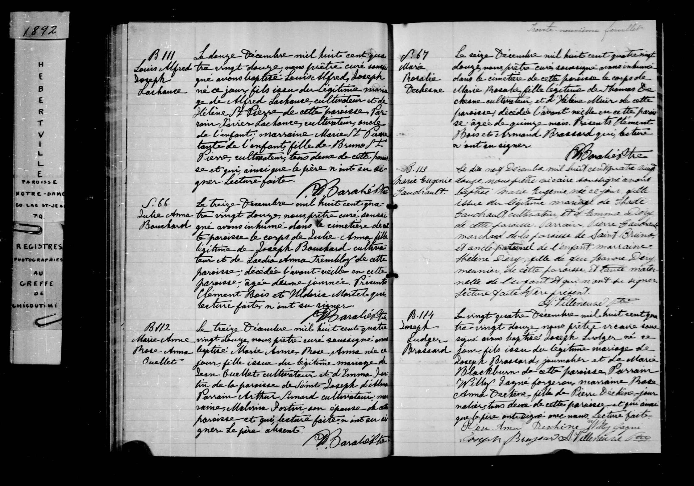 Paroisse/Ville : Chicoutimi, Le-Fjord-du-Saguenay, QC, Canada