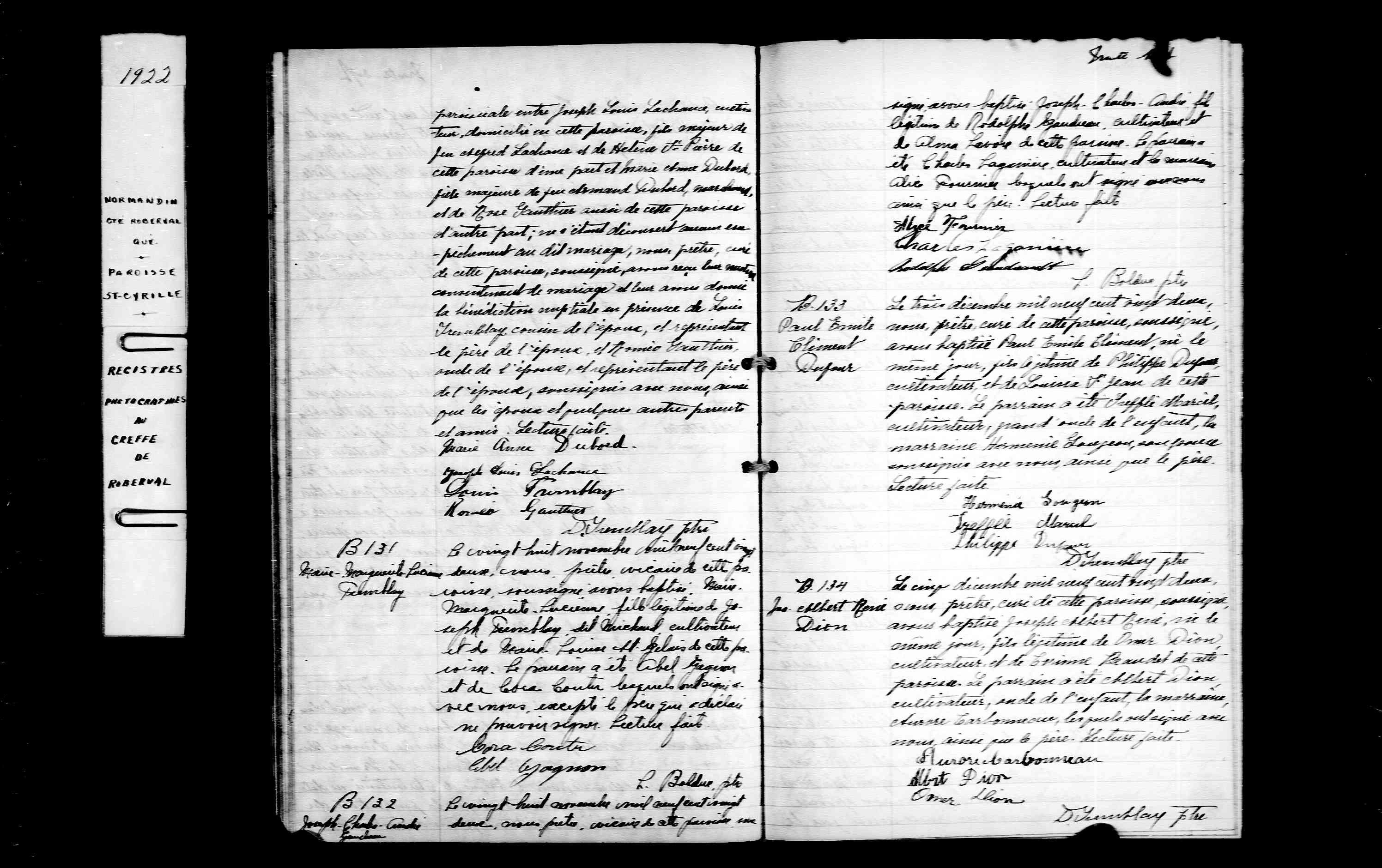 Mariage ou Union de fait : 27 novembre 1922 Saint-Cyrille/Normandin, Maria-Chapdeleine, QC, Canada PG2