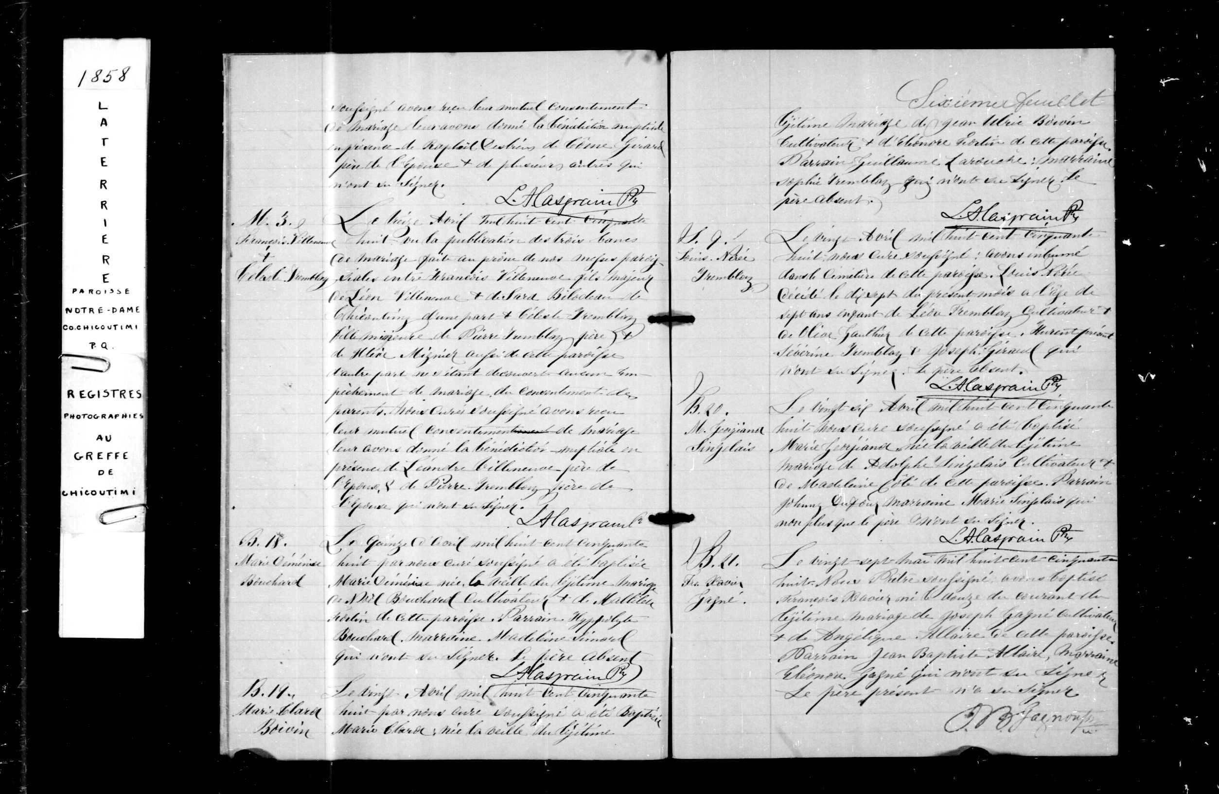 Mariage ou Union de fait : 13 avril 1858 Laterrière, Le-Fjord-du-Saguenay, QC, Canada