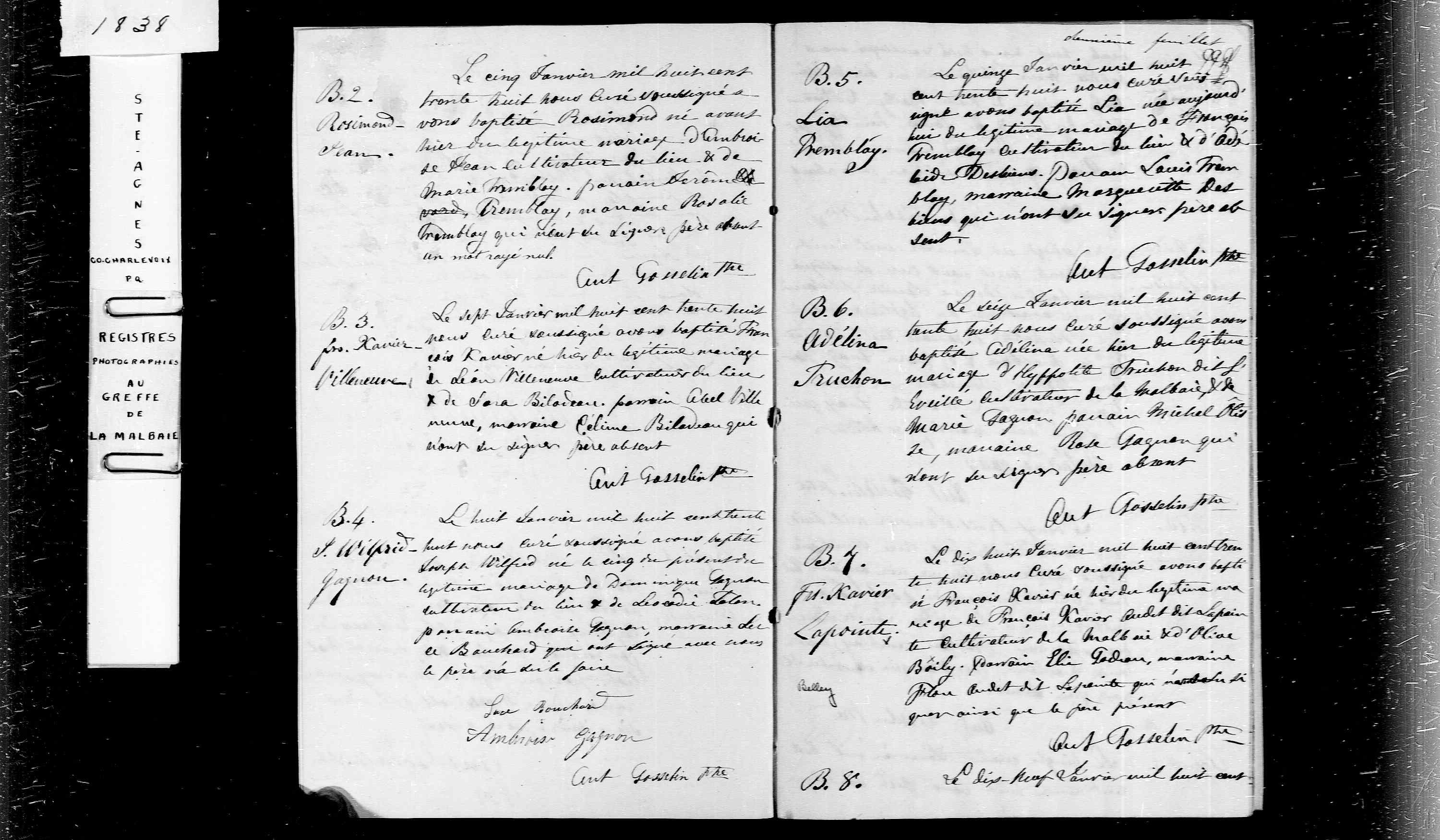 Baptême : 7 janvier 1838
