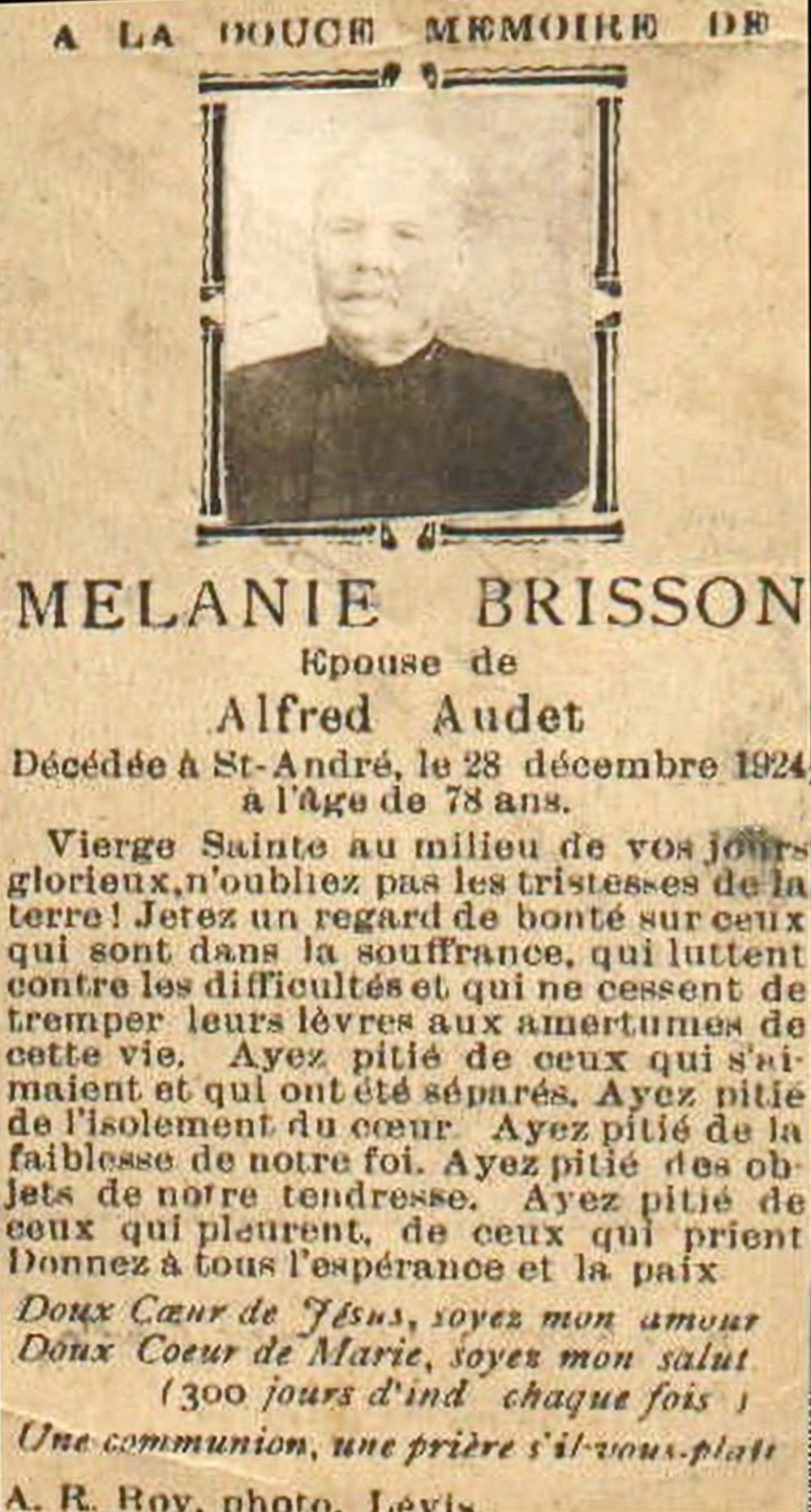 DÉCÈS: 28 décembre 1924 Saint-André-du-Lac-Saint-Jean