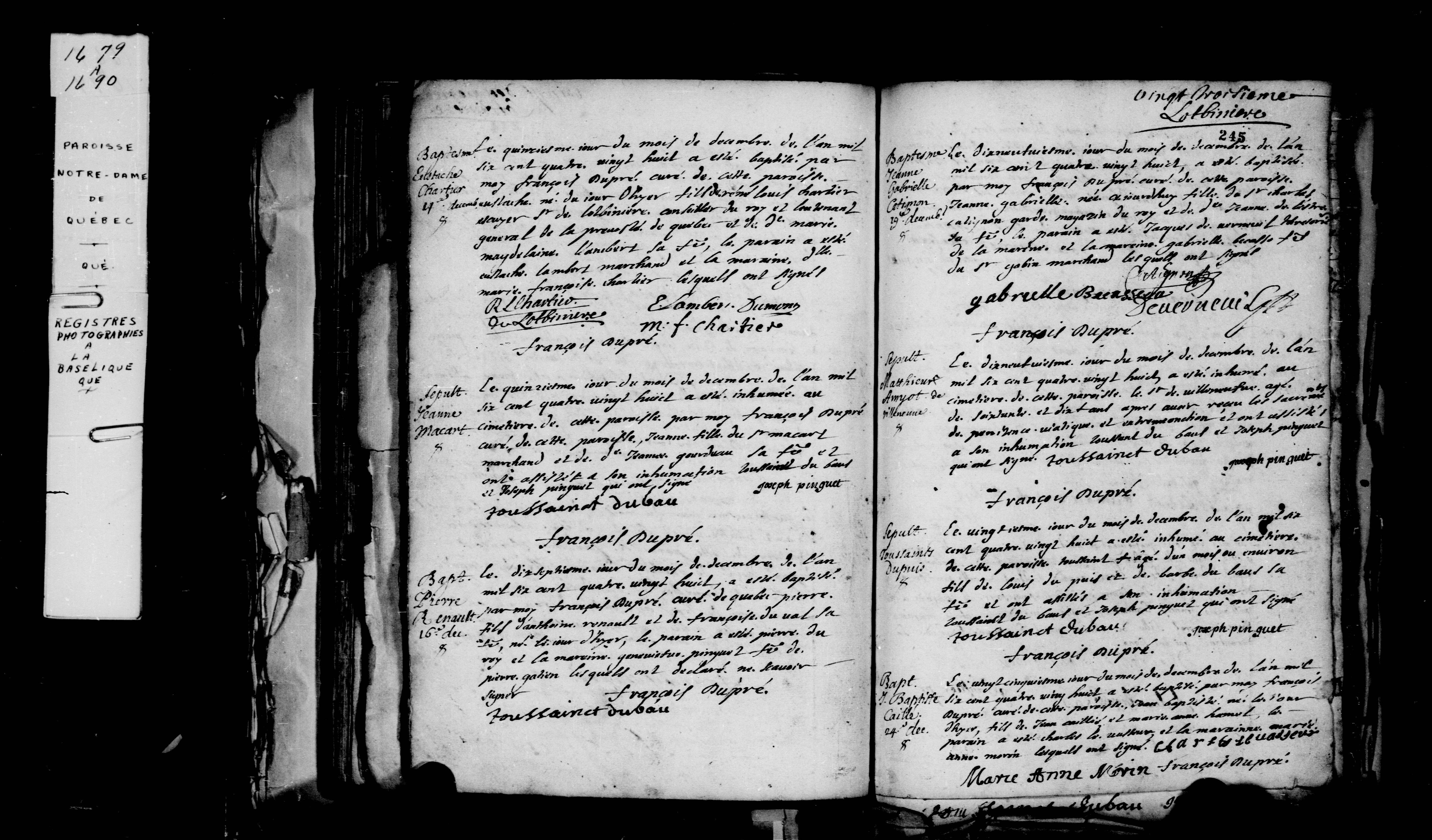 - Témoins : Toussaint Dubeau, Joseph Pinguet