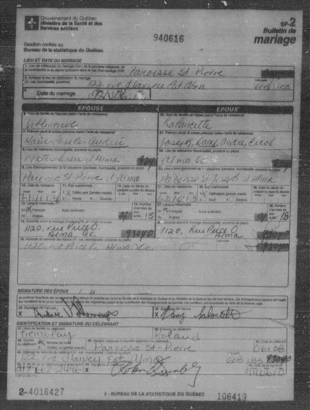 | 02 | Audrée VILLENEUVE | Conjointe de 01 | F |
