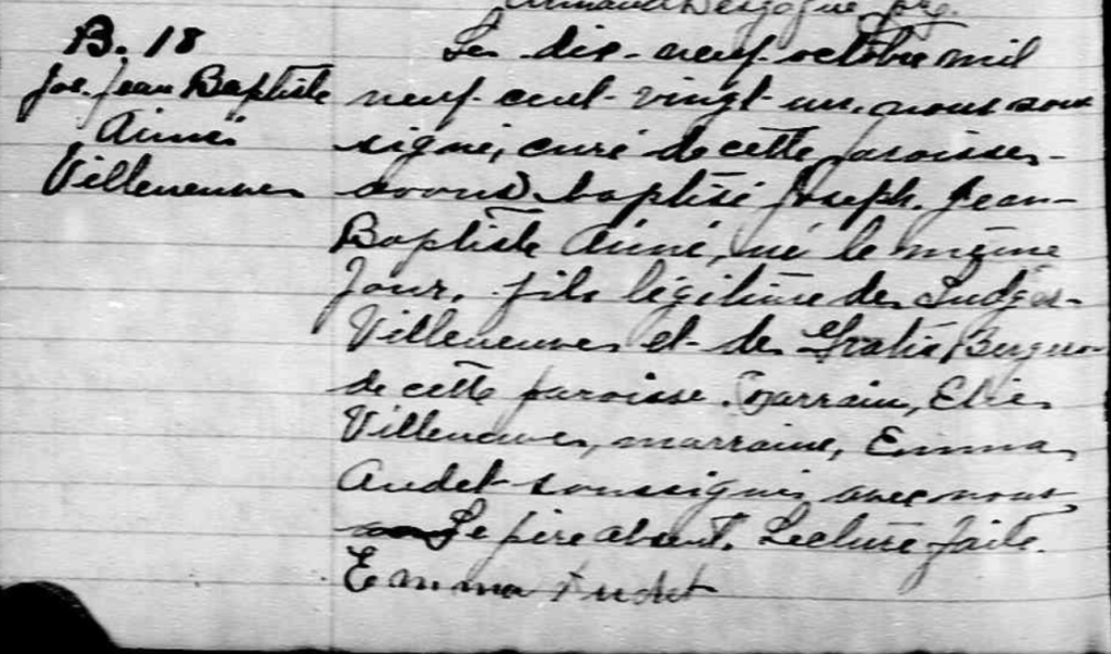 | 01 | Aimé VILLENEUVE | Le baptisé | M |