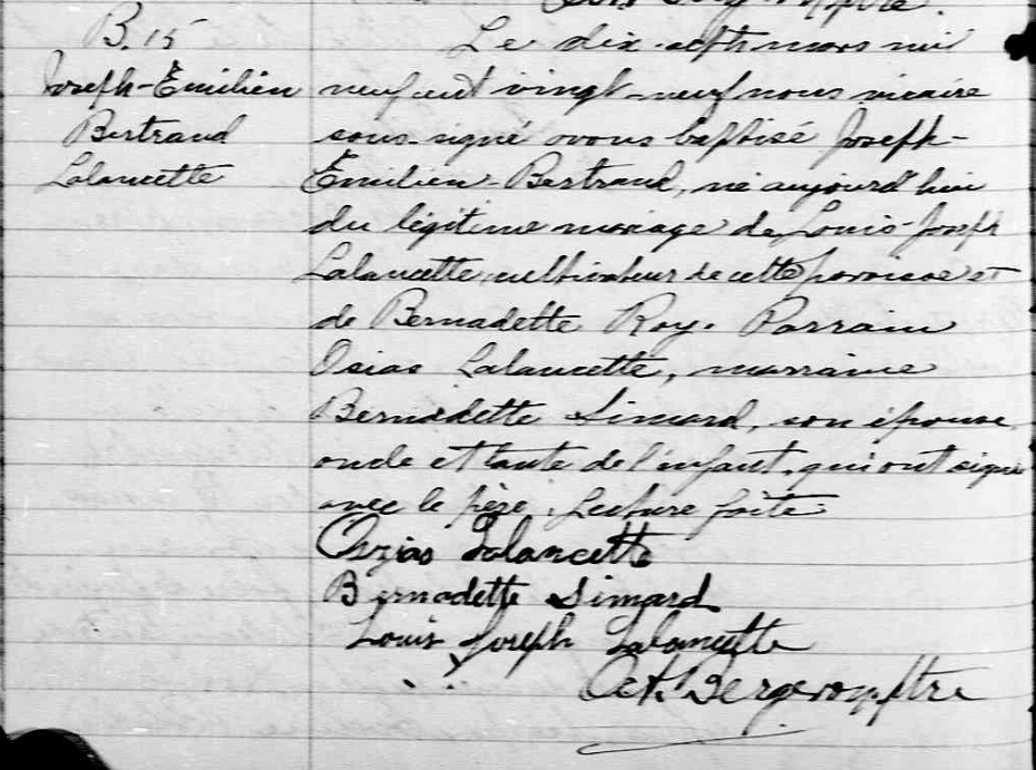 | 01 | Bertrand LALANCETTE | Le baptisé | M |