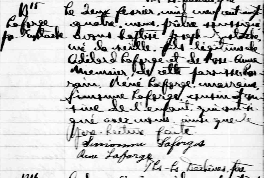 | 02 | Adélard LAFORGE | Père de 01 Conjoint de 03 | M |