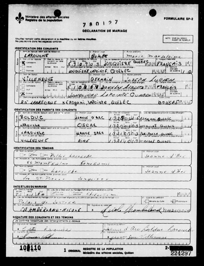 | 02 | Colette LAROUCHE | Conjointe de 01 | F |