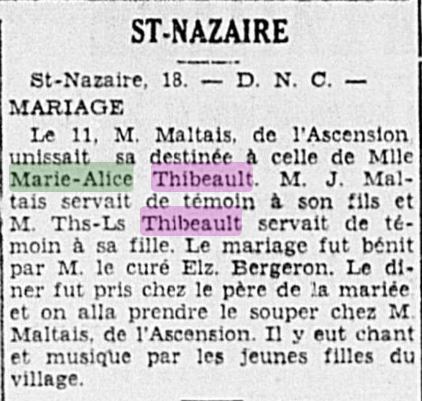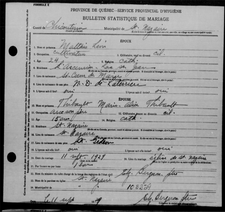| 01 | Léon MALTAIS | Conjoint de 02 | M |