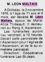 | 03 | Louis-Alphonse MALTAIS | Père de 01 Conjoint de 04 Décédé | M |