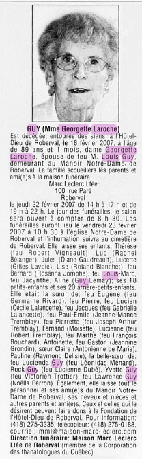 | 01 | Georgette LAROCHE | La défunte Conjointe de 02 | F |