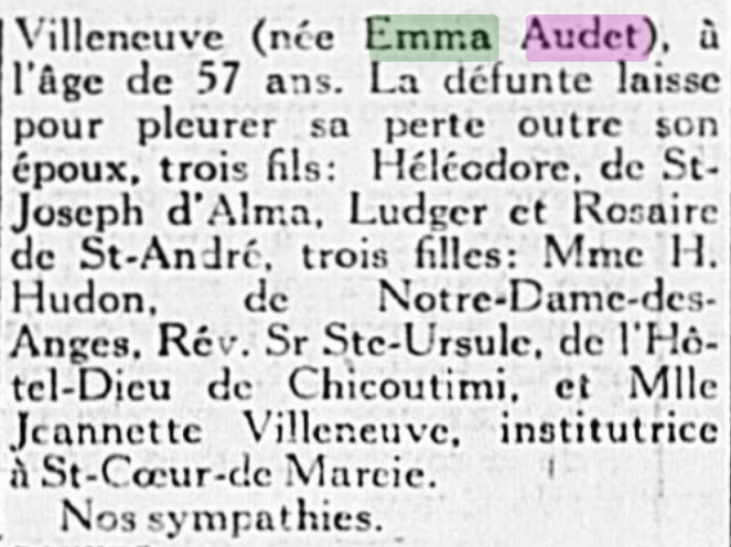 | 03 | Alfred AUDET | Père de 01 Conjoint de 04 Décédé | M |