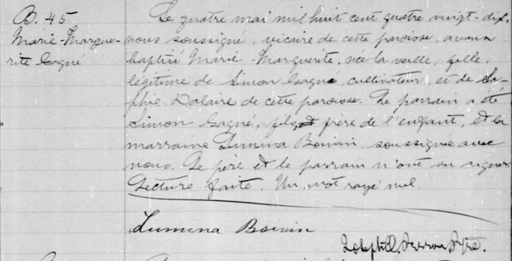 | 01 | Marguerite GAGNÉ | La baptisée | F |