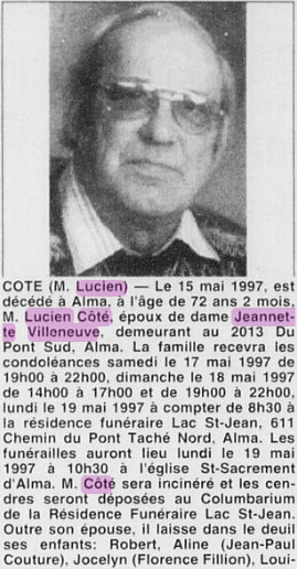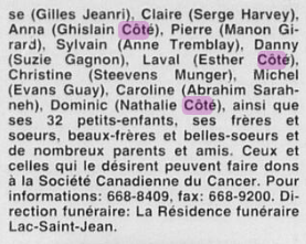 | 03 | Lionel CÔTÉ | Père de 01 Conjoint de 04 Décédé | M |